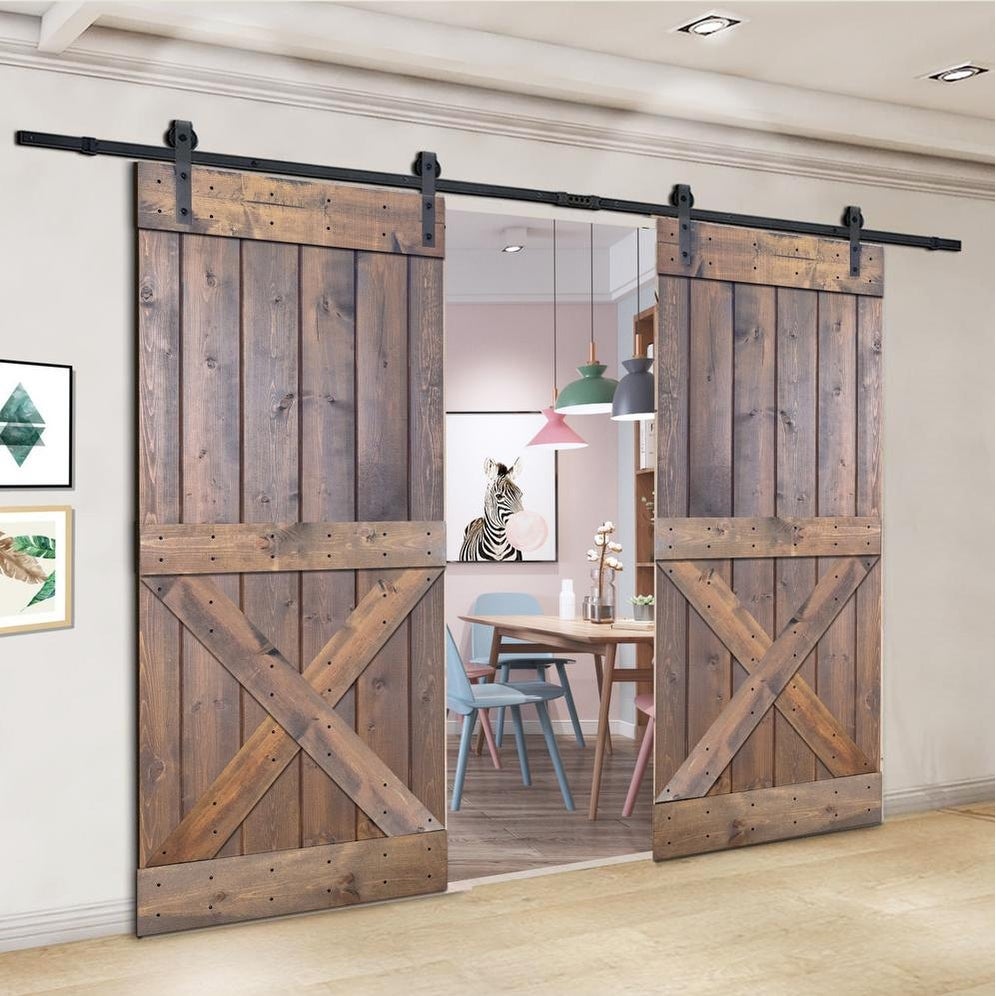 Barn doors slide on a track on the outside of a wall and cover it when open. This means that pocket doors slide between rooms and hallways, making them slightly more versatile. Barn doors may also block outlets and wall switches when open, so they need to have a blank wall to slide over.